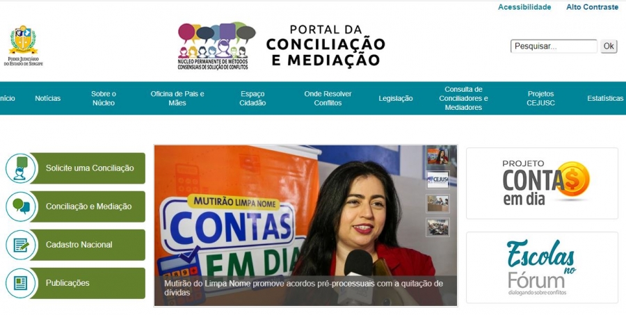 Você sabe que pode agendar pela internet uma audiência de conciliação ou mediação? Essa facilidade e muitas outras informações podem ser encontradas no Portal da Conciliação do Tribunal de Justiça de Sergipe, que acabou de passar por uma reformulação, lançada hoje, 06/03. As mudanças fazem parte de um Projeto de Reestruturação dos Portais Corporativos da atual gestão.