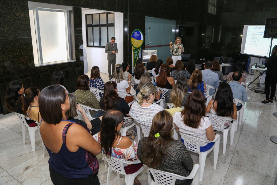 No Palácio da Justiça e Anexos Administrativos, as servidoras puderam acompanhar uma palestra sobre prevenção do câncer do colo uterino e mama, proferida pela ginecologista e obstetra do Centro Médico do TJSE, Rosita Fiorotto de Carvalho.