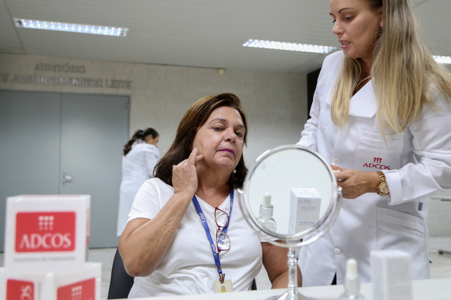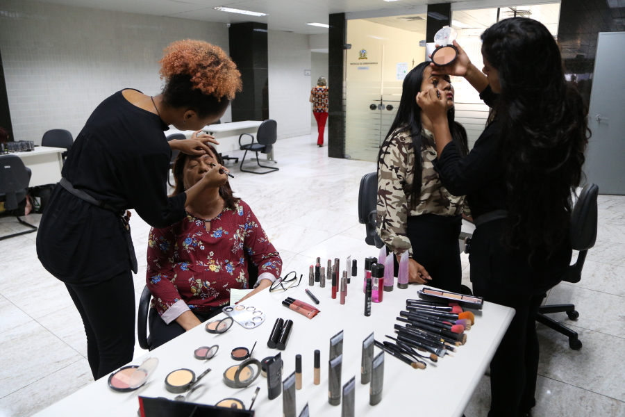 Outra atividade ofertada nesta semana em homenagem às mulheres, também no Fórum Gumersindo Bessa, é o “Dia de Beleza”, cujo objetivo é melhorar a autoestima e o bem-estar das servidoras. Avaliação de pele, maquiagem, higienização facial, design de sobrancelhas e distribuição de vouchers para sessão de depilação a laser, além do estande Mama Amiga contaram com a participação das servidoras.
