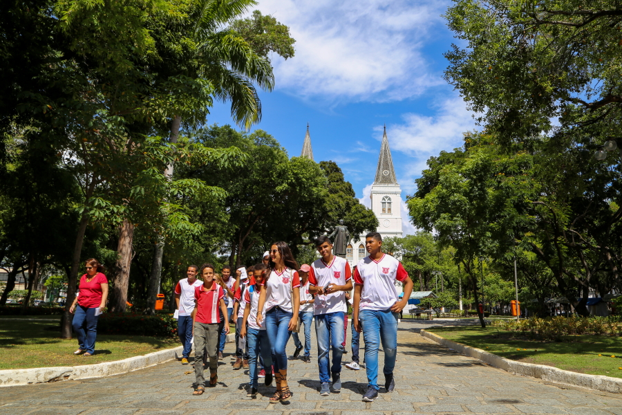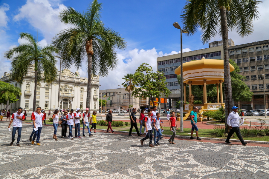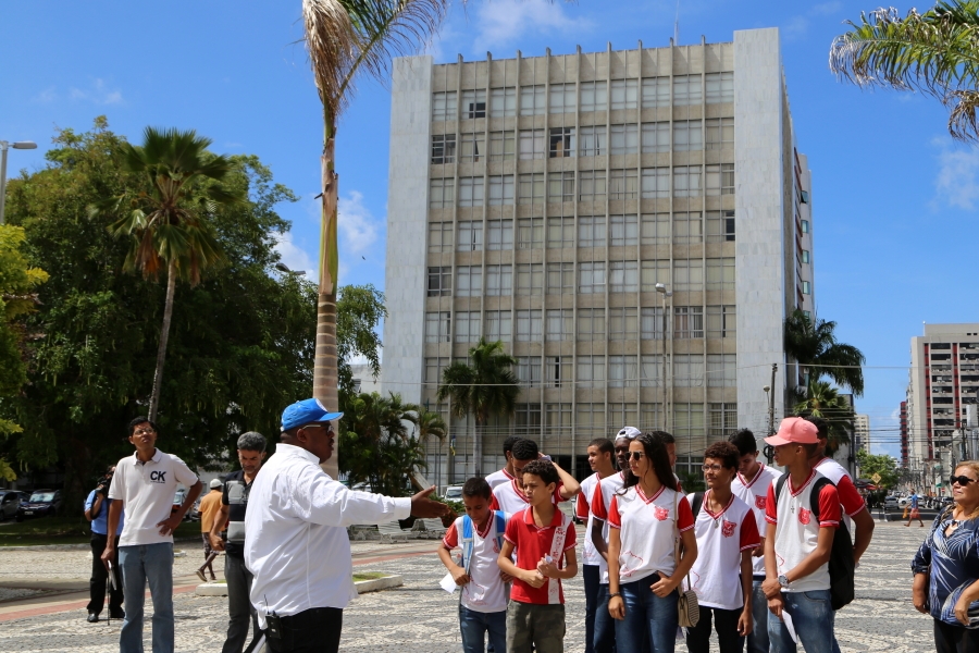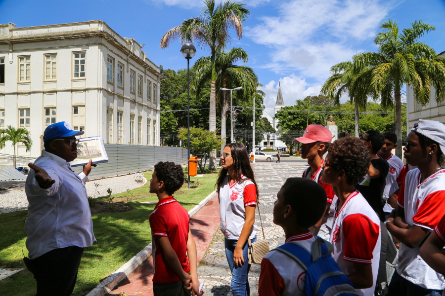 Uma aula ao ar livre, passando por praças e prédios históricos. Foi assim que o Memorial do Judiciário comemorou o aniversário dos 165 anos de Aracaju, com professores de História e alunos do 9º ano da Escola Municipal Neuzice Barreto, da Piabeta, em Nossa Senhora do Socorro. O passeio – guiado pelos professores Osvaldo Ferreira Neto e Verônica Nunes – aconteceu na manhã desta sexta-feira, 13/03, saindo do Memorial, na Praça Olímpio Campos, passando pela Praça Fausto Cardoso, com final na Igreja São Salvador.