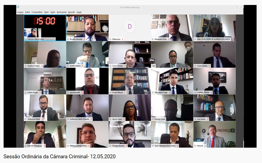 A sessão por videoconferência foi presidida pela Desembargadora Ana Lúcia Freire de Almeida dos Anjos, com a participação dos outros membros da Câmara Criminal, os Desembargadores Edson Ulisses de Melo e Diógenes Barreto. A próxima sessão por viodeoconferência da Câmara Criminal está agenda para o dia 26 de maio.