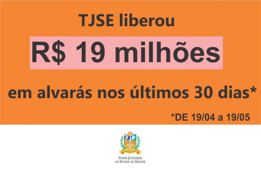 No período de 19 de abril a 19 de maio, foram expedidas pelo Tribunal de Justiça de Sergipe (TJSE) 3.573 ordens de pagamentos/alvarás em todo o Estado, o que resultou na liberação de R$ 19.334.643,07 em valores. Por meio da Corregedoria Geral da Justiça, foi recomendado aos Magistrados sergipanos a priorização da expedição de alvarás para levantamento de valores por partes e advogados.