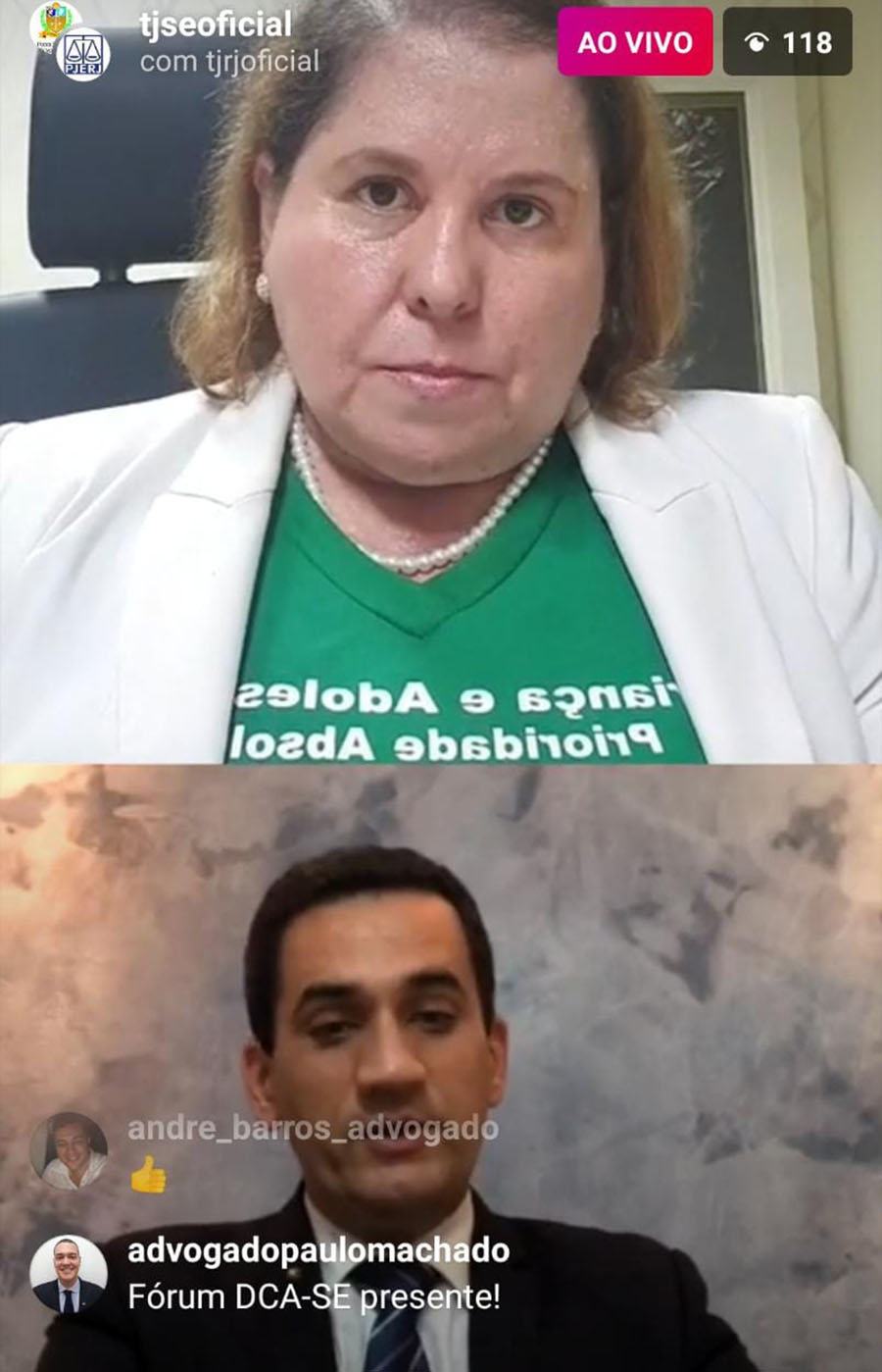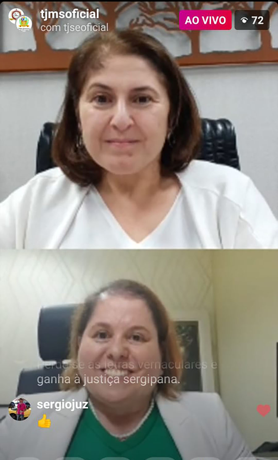 A live do TJSE teve início pouco depois das 18 horas, com o convite da Desembargadora Elizabete Anache, Coordenadora da Infância e Juventude do Tribunal de Justiça do Mato Grosso do Sul (TJMS), que falou sobre adoção de crianças indígenas e a importância do respeito à cultura de cada etnia. Depois, foi a vez da Juíza Rosa Geane convidar para a live o Juiz Sérgio Luiz Ribeiro, Presidente da Coordenadoria Judiciária de Articulação das Varas da Infância, Juventude e Idoso (Cevij). O tema abordado por ele foi ‘Alteração de perfil’.