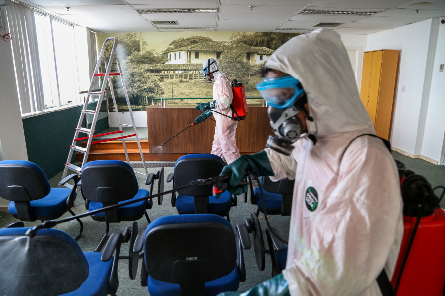 Além de áreas como terminais, pontos de ônibus, mercados, praças e calçadas próximas a hospitais, a Prefeitura passou a esterilizar também partes internas de órgãos públicos municipais, estaduais e federais. Durante a ação, são aplicados hipoclorito de sódio e sabão desinfetante, por meio de jato de alta pressão, eliminando o vírus que, porventura, esteja no chão, corrimão, paredes ou outros locais onde possa haver contato com a população. Todos membros da equipe de desinfecção foram treinados e atuam com equipamentos de proteção individual, como óculos, máscaras com filtro para gases, luvas, macacão e respirador facial.