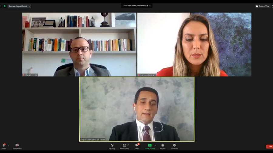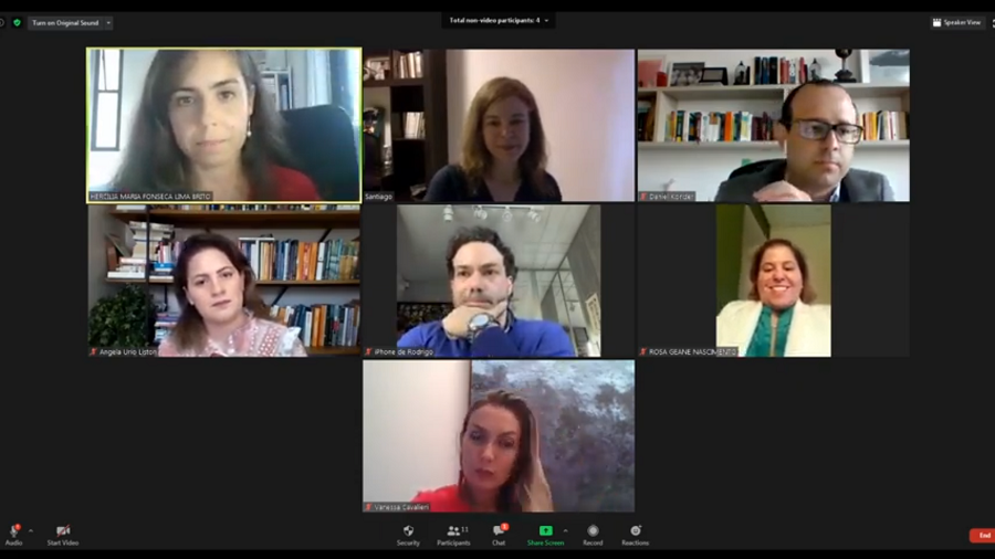 O primeiro painel debateu as "Audiências virtuais no processo socioeducativo e protetivo em tempos de pandemia", com informações trazidas pelos Juízes Vanessa Cavalieri e Sérgio Luís de Souza, de Varas da Infância e Juventude do TJRJ. Foi exposto como foram implantadas as audiências virtuais e por videoconferência, a partir do mês de maio, para os processos de adolescentes em cumprimento de medidas socioeducativas, destacando a cautela com o procedimento, os fluxos construídos, a participação da Defensoria Pública, das testemunhas e dos próprios adolescentes. Também a continuidade das audiências concentradas durante a pandemia, realizadas de forma virtual, para reavaliar as medidas de acolhimento das crianças e adolescentes institucionalizados, contando com a participação de toda a Rede de Proteção no Estado do Rio de Janeiro.