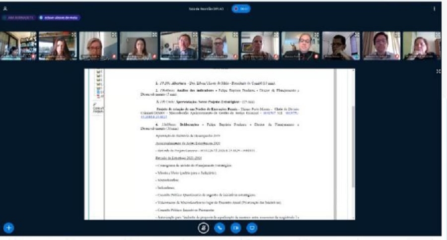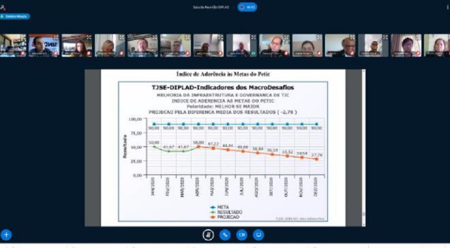 O Comitê Gestor do Planejamento Estratégico do Tribunal de Justiça de Sergipe (TJSE) realizou nesta sexta-feira, dia 26/06, a 36ª Reunião de Análise e Estratégia (RAE), primeira do ano de 2020. O encontro, feito por videoconferência, reuniu o Presidente do TJSE, Des. Osório de Araújo Ramos Filho e o Presidente do Comitê, Des. Edson Ulisses de Melo, todos os demais membros do Comitê, gestores dos macrodesafios, além dos representantes da Associação dos Magistrados de Sergipe (Amase) e do Sindicato dos Servidores do Poder Judiciário (Sindijus).
