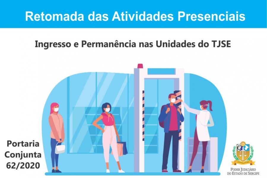 Foi publicada na última sexta-feira, 17/07, a Portaria Conjunta 62/2020 GP1 Normativa, que estabelece o Protocolo de Emergência para Funcionamento e Retorno das Atividades Presenciais nas unidades do Poder Judiciário do Estado de Sergipe. A Portaria – que padroniza ações, disciplina o controle de acesso, circulação e permanência do público externo, servidores e magistrados – conta com três eixos. Um deles é o de ingresso e permanência nas unidades do Tribunal de Justiça de Sergipe (TJSE), tendo como objetivo a prevenção do coronavírus e o enfrentamento à doença.