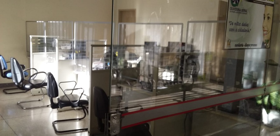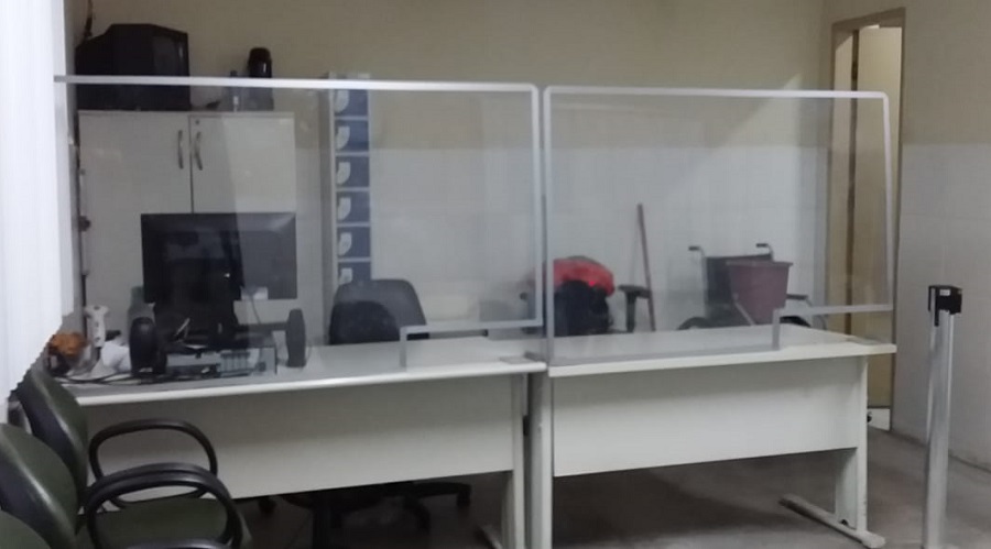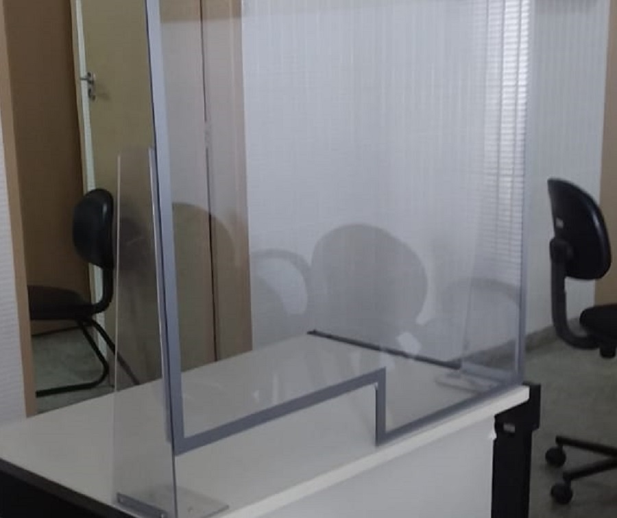 Nas recepções dos fóruns, estão sendo instalados protetores em acrílico, com o objetivo de conferir maior segurança quando for iniciado o atendimento presencial ao público externo, cuja previsão é na segunda fase do Protocolo de Emergência para Funcionamento e Retorno das Atividades Presenciais, mediante agendamentos.