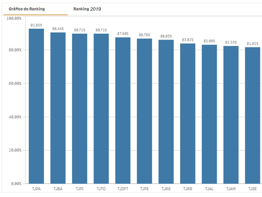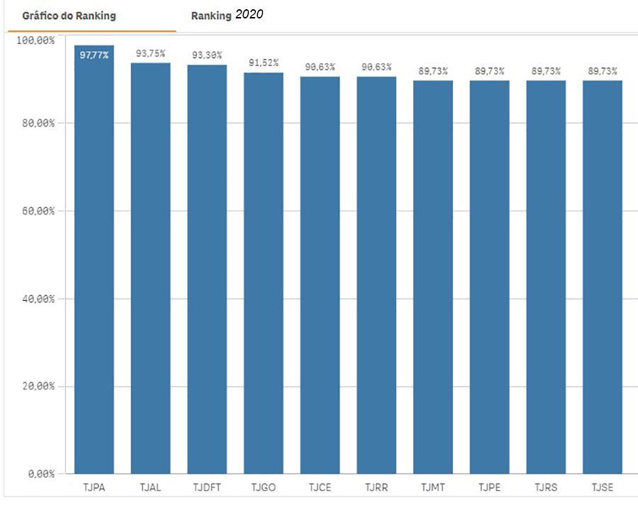 O terceiro colocado, com 97,77% de pontuação, foi o Tribunal de Justiça do Pará (TJ-PA) seguido pelo Tribunal Regional do Trabalho da 20ª Região (TRT 20) e na quarta posição, com 95,98% de pontuação. Em quinto lugar e com pontuação de 95,69% ficaram o Tribunal Regional Eleitoral do Pará (TRE-PA) e o Tribunal Regional Eleitoral do Rio Grande do Norte (TRE-RN).