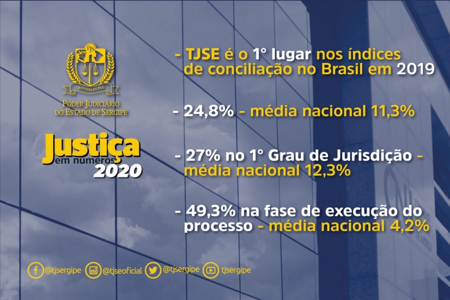 Em 2019, havia em todo país 1.284 Cejuscs instalados na Justiça Estadual. Em Sergipe são 16 Cejuscs espalhados pela capital e interior, conforme os dados do Relatório Justiça em Números. O documento anterior mostrou que, em 2018, o índice de conciliação na Justiça Estadual, em todo país, foi de 10,4%. O TJSE, em 2018, obteve o segundo melhor índice do país, 21,1%. O primeiro colocado foi o Tribunal do Mato Grosso do Sul, com 22,5%.
