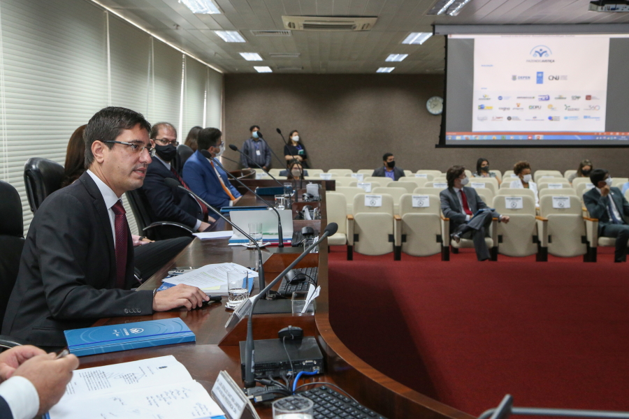 A primeira atividade da programação aconteceu no auditório do Tribunal Pleno, no Palácio da Justiça. O Juiz Auxiliar da Presidência do CNJ, Fernando Pessoa, explicou como funciona o Fazendo Justiça. Em seguida, o Conselheiro do CNJ Mário Augusto Figueiredo de Lacerda Guerreiro, que também é Supervisor do Departamento de Monitoramento e Fiscalização do Sistema Carcerário e do Sistema de Execução de Medidas Socioeducativas (DMF), falou sobre a importância do termo de cooperação.