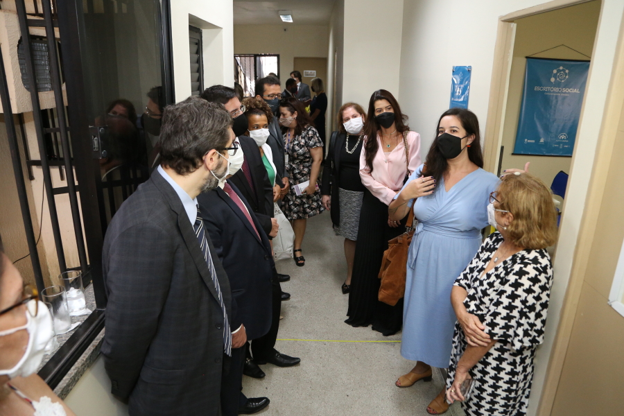 Por último, já no final da manhã, foi inaugurado o Escritório Social, no Fórum Olímpio Mendonça, no conjunto Orlando Dantas, onde estão localizadas a Vara de Execução Penal (VEP) e a Vara de Execução das Medidas e Penas Alternativa (Vempa). O Escritório tem o objetivo de atender, acolher e encaminhar as pessoas egressas do sistema prisional e seus familiares para as políticas públicas existentes, auxiliar os estabelecimentos prisionais no processo de preparação das pessoas pré-egressas para a liberdade, mobilizar e articular as redes de políticas públicas e sociais para a garantia de direitos àquelas pessoas.