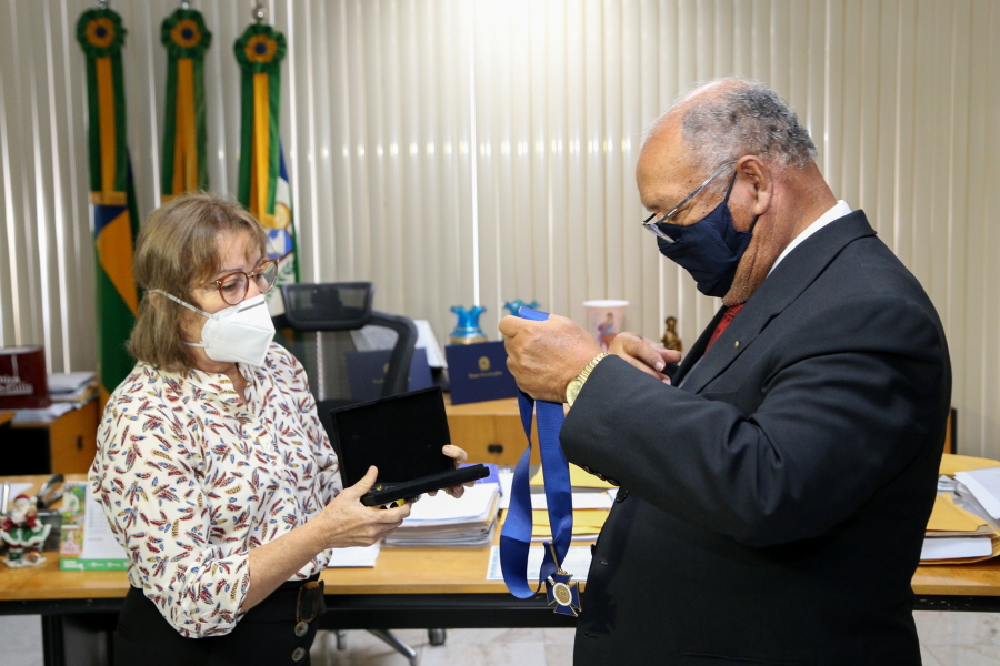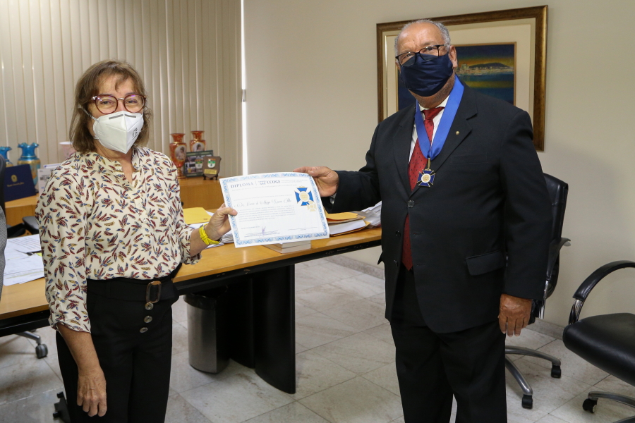A comenda é entregue a personalidades eleitas pelo Colegiado que tenham se destacado pelos notáveis serviços prestados às causas da Justiça. “Essa medalha é oferecida, em todas edições do Encontro do Colégio, a quem nos auxilia na Corregedoria. Então, a minha escolha foi para os Desembargadores Osório e Roberto, que foram muito participativos na minha gestão frente à Corregedoria”, ressaltou a Desembargadora Elvira, que também é a 1ª Secretária do CCOGE.