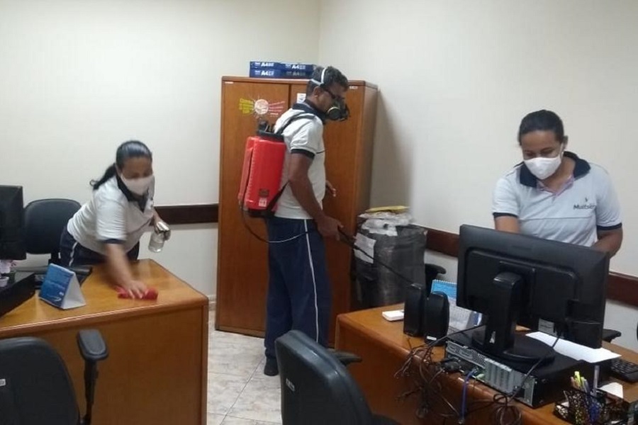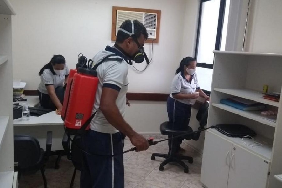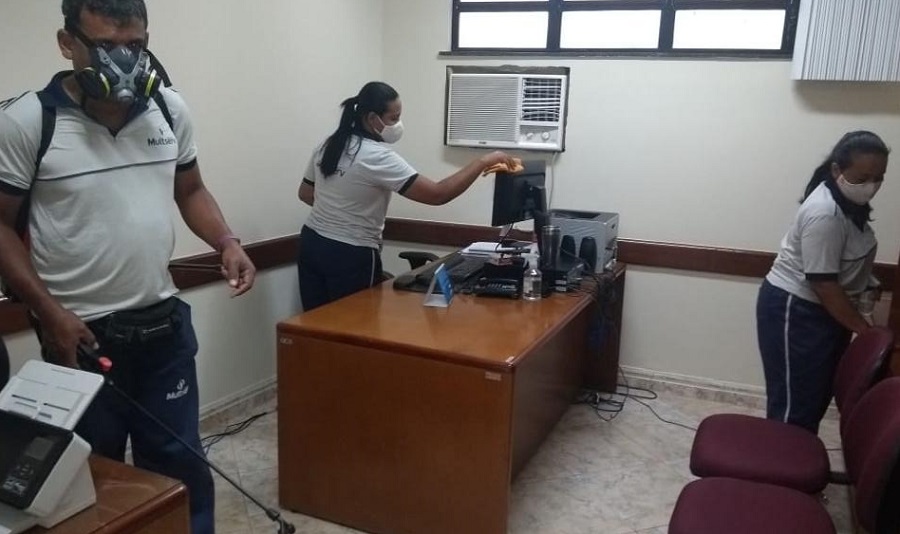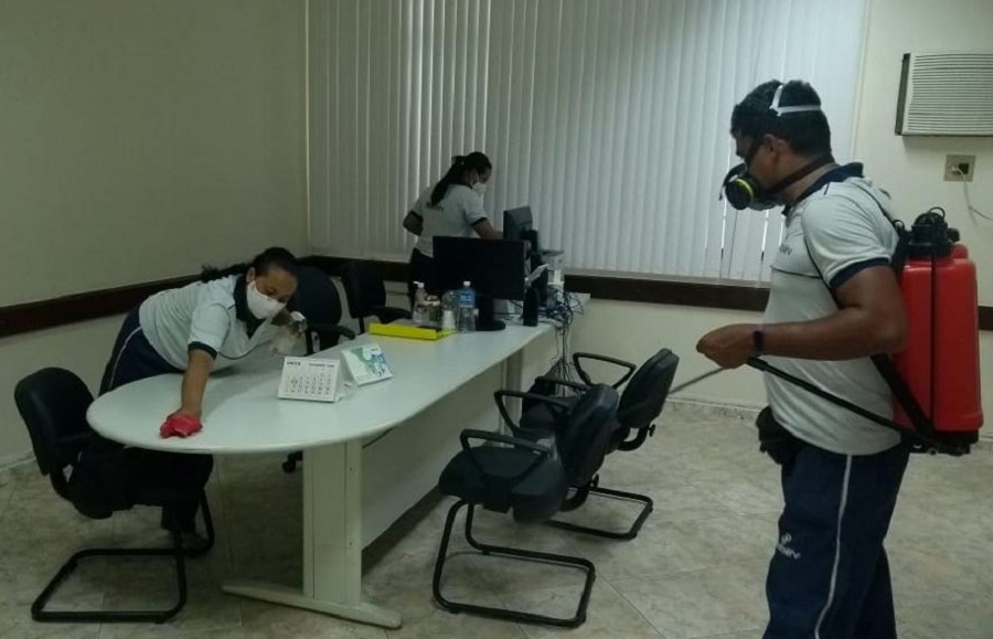 A medida vem sendo adotada desde o mês de junho, com o objetivo de tornar os ambientes mais seguros tanto para servidores quanto para jurisdicionados. Durante a desinfecção, são aplicados hipoclorito de sódio e sabão desinfetante. Os funcionários da limpeza foram capacitados para realizarem a desinfecção diária e constante nos prédios. Em todas as unidades foram afixados nas áreas comuns dispensadores de álcool em gel 70% e informações para conscientizar sobre as medidas de segurança que devem ser adotadas por todos.