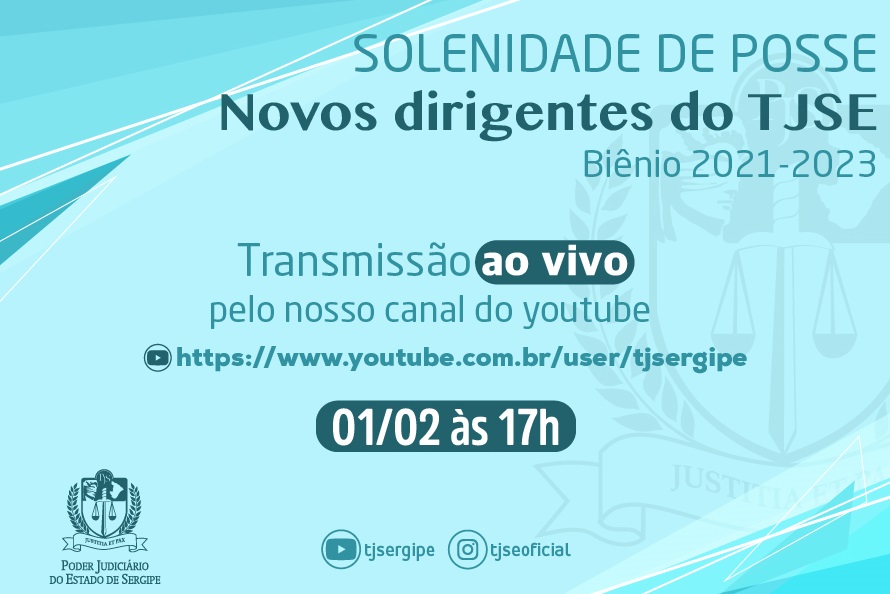 A posse da nova Mesa Diretora do Tribunal de Justiça de Sergipe (TJSE) para o biênio 2021-2023 será realizada nesta segunda-feira, 1º de fevereiro. Serão empossados os Desembargadores Edson Ulisses de Melo, como Presidente; Ana Lúcia Freire de Almeida dos Anjos, Vice-Presidente; e Diógenes Barreto, Corregedor-Geral da Justiça. A sessão solene de posse acontecerá às 17 horas, por videoconferência, com transmissão ao vivo pelo canal do TJSE no YouTube.