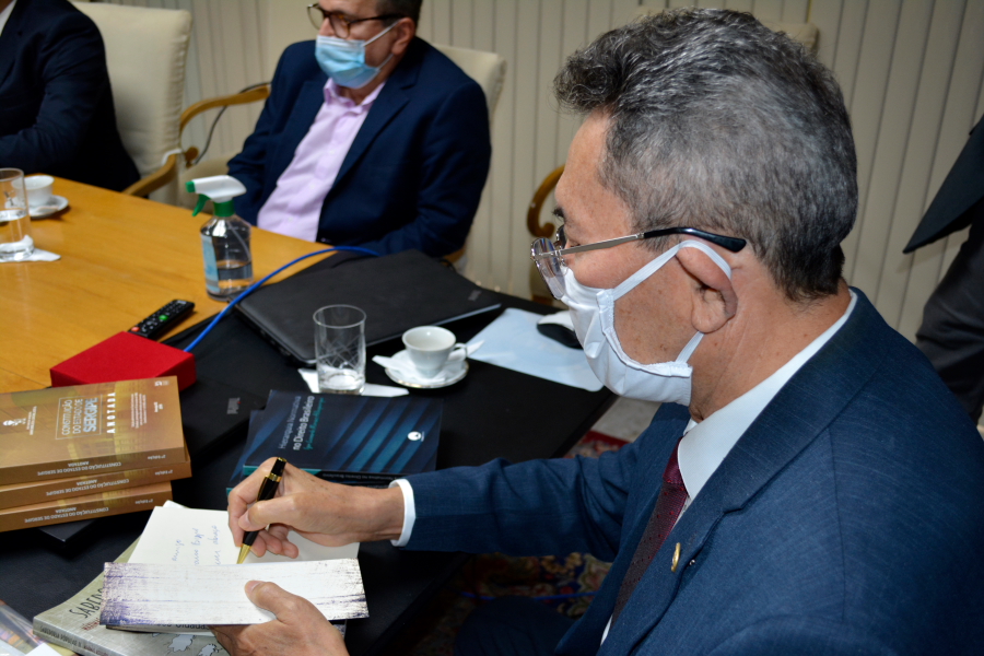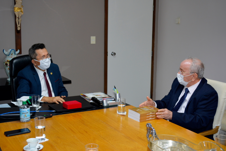 O Des. Edson Ulisses também presenteou o chefe do Legislativo com livros de sua autoria autografados, Reflexões Cidadãs e Sabedoria Popular II.