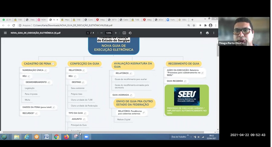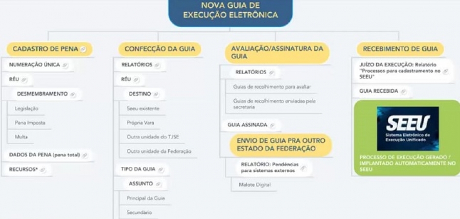 O projeto-piloto de automatização de procedimentos junto ao Sistema Eletrônico de Execução Unificado (SEEU), realizado pelo Tribunal de Justiça de Sergipe, por meio da Diretoria de Modernização Judiciária e da Diretoria de Desenvolvimento de Sistemas, está em uma nova etapa. O projeto, que contempla um novo cadastro de pena, novo modelo de guia de execução e implantação automática de processos no SEEU, está sendo implantado na 4ª Vara Criminal da Comarca de Aracaju, na Vara de Execuções Penal (VEP) e na Vara de Medidas e Penas Alternativas (Vempa).