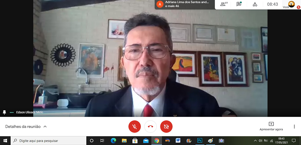 O Presidente da COEGEMAS, Valdiosmar Santos, fez a abertura da reunião, falando da importância do trabalho dos assistentes sociais na garantia da vida e de direitos de cada criança e adolescente, além do trabalho direto com a população em situação de vulnerabilidade, em especial, a população em situação de rua. Enfatizou que se tratam de trabalhadores e trabalhadoras que estão, desde o início da pandemia, na linha de frente, em uma atuação cotidiana, presencial e direta em todas as situações que demandam o acolhimento da assistência social. Também salientou a participação do TJSE na reunião, apontando o Presidente Des. Edson Ulisses de Melo como um gestor detentor de valores éticos e morais, com sensibilidade às causas sociais, e que o Colegiado reconhece a referida representatividade na Casa da Justiça.