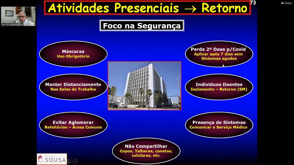 “Qual a melhor vacina? A que chega primeiro no braço”. Esta foi uma das afirmações do cardiologista Antônio Carlos Sobral Sousa, Doutor em Medicina pela Faculdade de Medicina da USP e professor titular de Cardiologia do Departamento de Medicina e do Programa de Pós-Graduação em Ciências da Saúde da Universidade Federal de Sergipe (UFS). A convite do Centro Médico do Tribunal de Justiça de Sergipe, ele ministrou uma palestra com o tema ‘Aspectos gerais da pandemia da Covid-19: retorno ao trabalho presencial", veiculada no canal TJSE Eventos, no YouTube, na manhã desta segunda-feira, 12/07. A palestra pode ser vista clicando aqui.