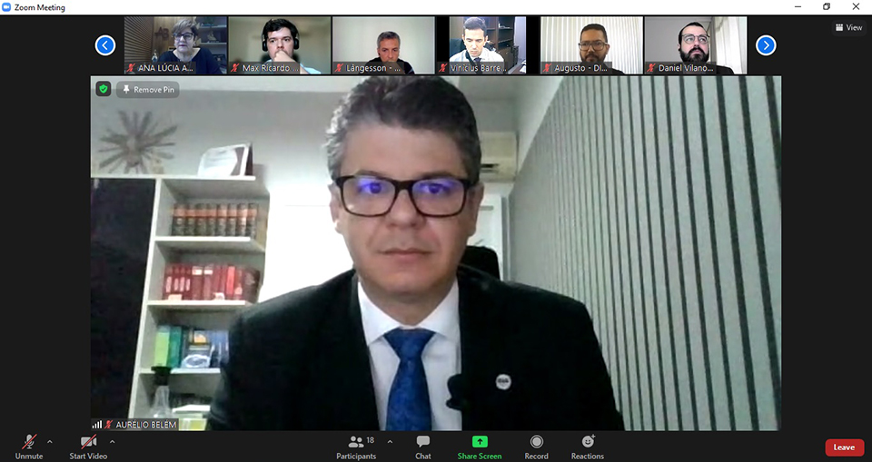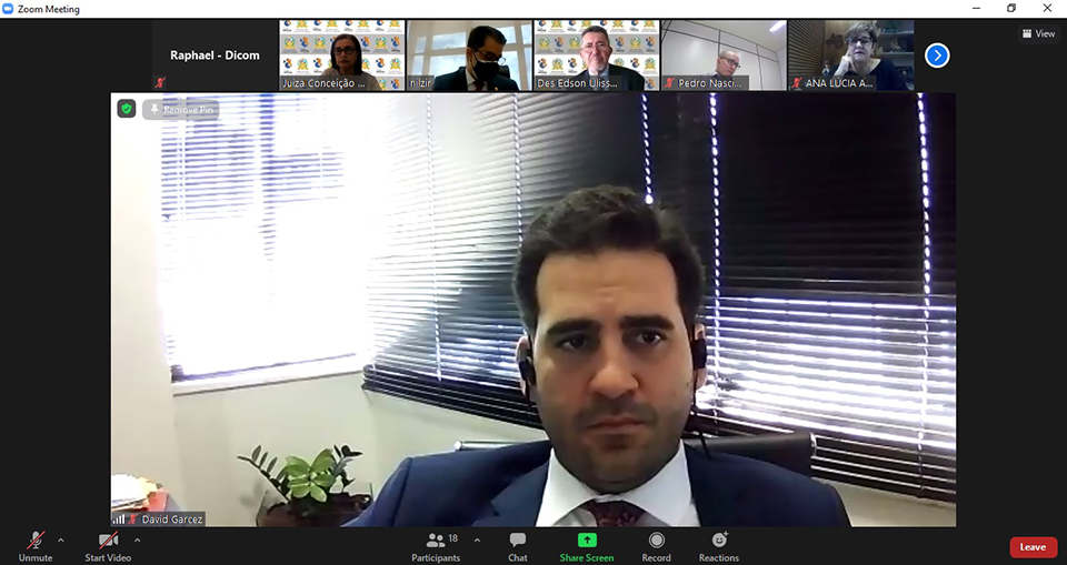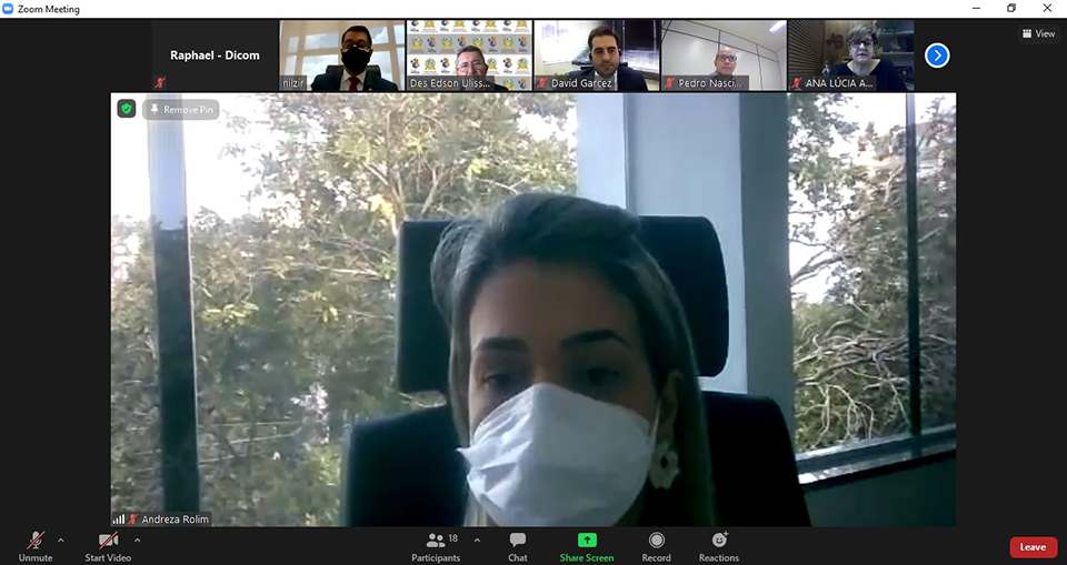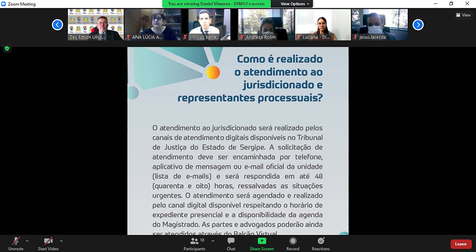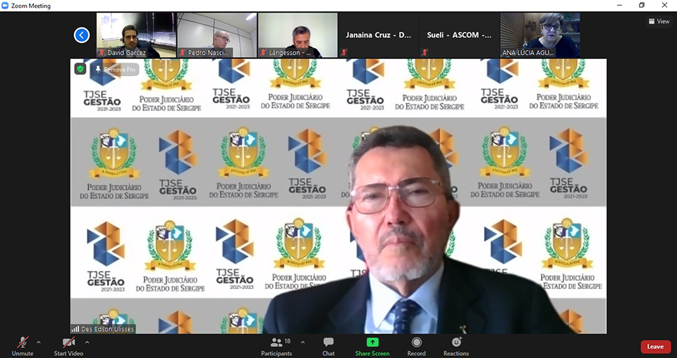 O Presidente do Poder Judiciário, Desembargador Edson Ulisses de Melo, e gestores do Tribunal de Justiça de Sergipe (TJSE) apresentaram na manhã desta quinta-feira, 22/07, por meio de videoconferência, o funcionamento do Juízo 100% Digital a representantes do Ministério Público Estadual, Defensoria Pública e Ordem dos Advogados do Brasil (OAB/SE). Com o Juízo 100% Digital, todos os atos processuais, inclusive audiências e sessões de julgamento, poderão ser praticados exclusivamente por meio eletrônico e remoto, pela internet. A nova modalidade foi implementada em unidades do TJSE, no último dia 8, e já tem 107 processos cadastrados.