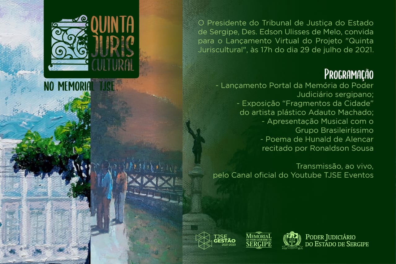 O Presidente do Poder Judiciário de Sergipe, Desembargador Edson Ulisses de Melo, lançará virtualmente nesta quinta-feira, 29, às 17 horas, no Memorial do Poder Judiciário, o Projeto Quinta Juriscultural; com transmissão ao vivo pelo canal oficial do YouTube TJSE Eventos.