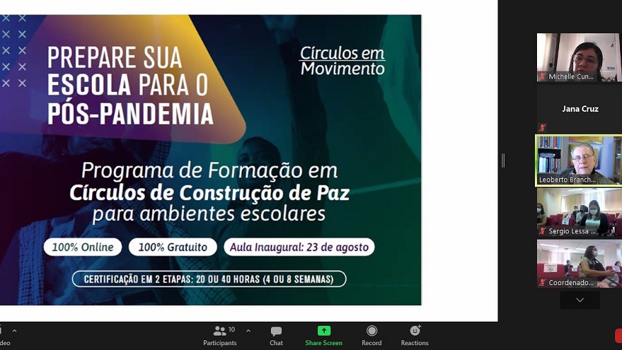 Conforme Paula Regina de Santana Santos, da Associação Marujos do Bem, em Estância já vinha sendo realizados círculos de paz, que foram suspensos após o início da pandemia da Covid-19. Ainda participaram da reunião Ana Mércia Santana e Nadja Reis, técnicas do Serviço de Projetos Escolares em Direitos Humanos da Seduc; Aurenitha Souza, Secretaria de Educação de Estância; e a Assistente Social Michelle Cunha, do TJSE. Da CIJ, estiveram presentes o psicólogo Sérgio Lessa e a assessora Laís do Amor.