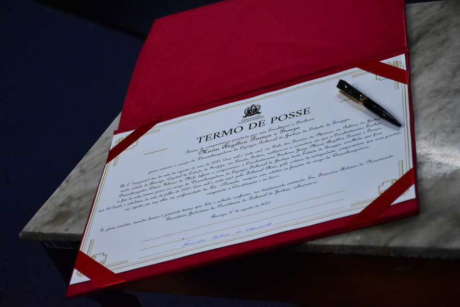 Aconteceu no final da tarde desta segunda-feira, 02/08, a posse da nova Desembargadora do Tribunal de Justiça de Sergipe (TJSE). A Juíza Maria Angélica França e Souza, até então titular do 1º Juizado Especial da Fazenda Pública, assumiu a vaga deixada pelo Desembargador Alberto Romeu Gouveia Leite, que se aposentou no mês de julho. A cerimônia aconteceu no auditório do Palácio da Justiça e foi transmitida ao vivo no canal TJSergipe, no YouTube, onde ficou gravada.