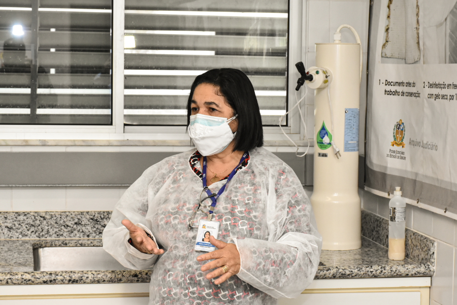 O Arquivo Judiciário está realizando hoje, 09/08, e amanhã, um curso sobre Métodos e Técnicas de Higienização e Conservação de Documentos. O curso, que tem 15 horas e é ministrado pela servidora Vera Lúcia Souza de Carvalho, do Núcleo de Conservação e Restauração Documental do Arquivo, é o primeiro presencial após o início da pandemia da Covid-19, mas foi restrito a 10 vagas justamente para manter os protocolos sanitários.
