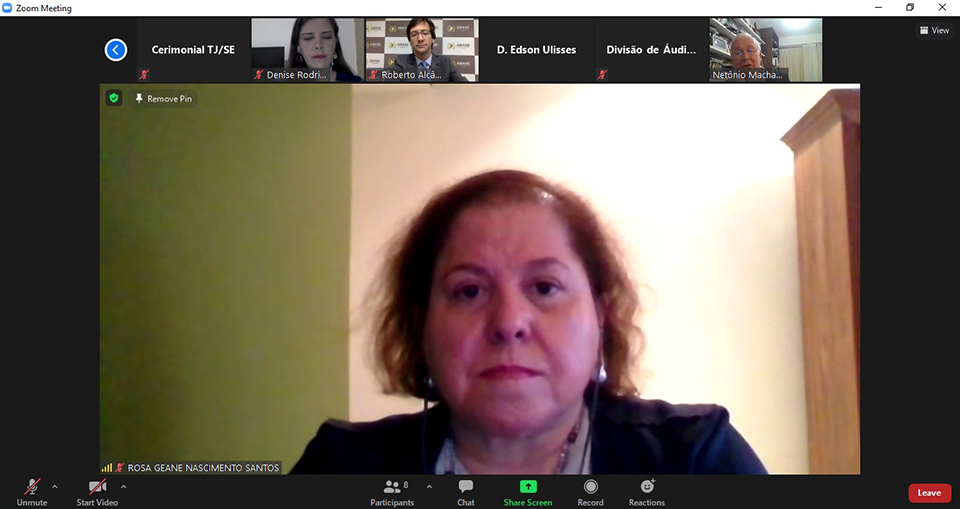 A Juíza Coordenadora da Mulher do TJSE, Rosa Geane Nascimento também compôs a mesa virtual do evento.