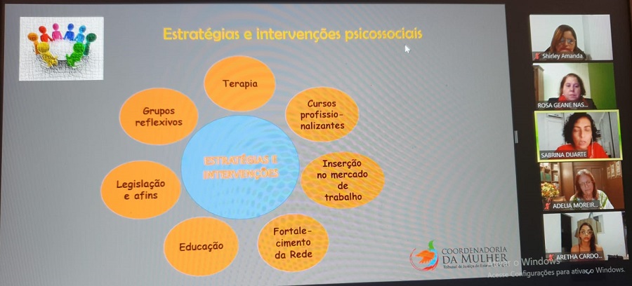 A Juíza Coordenadora Rosa Geane Nascimento, a Assistente Social Shirley Leite, a Psicóloga Sabrina Duarte e a Assessora Mariza Santos, da Coordenadoria da Mulher do Tribunal de Justiça de Sergipe, ministraram, no dia 04 de agosto, o Curso On-line “Assistência Jurídica às Mulheres em situação de Violência de Gênero”, voltado para advogadas e advogados sergipanos.