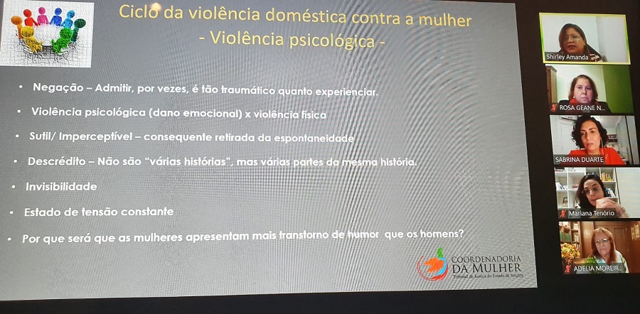 De acordo com a Coordenadora da Mulher Rosa Geane, durante a pandemia da Covid-19, conforme dados do Conselho Nacional de Justiça, a violência doméstica e familiar contra a mulher aumentou em 20% e, atualmente, a cada um minuto há um chamado de denúncia de violência contra a mulher. Ela ressaltou a importância da capacitação para a advocacia, assim como o TJSE e a CEVID tem proporcionado aos magistrados e à Rede de Atendimento.