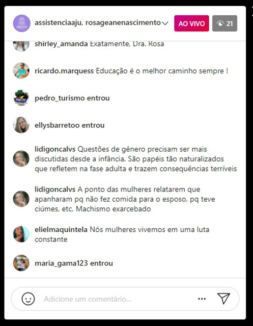 Ainda durante a live, foi informado que a Campanha Sinal Vermelho foi transformada em lei federal e estadual. A Lei Federal 14.188/2021, que instituiu o programa de cooperação Sinal Vermelho contra a Violência Doméstica, foi sancionada no dia 29/07. A lei incluiu no Código Penal o crime de violência psicológica contra a mulher, a ser atribuído a quem causar dano emocional. Já em Sergipe, foi sancionada Lei Estadual 8.846, no dia 27 de maio também deste ano, que instituiu o Programa de Proteção às Mulheres ‘Sinal Vermelho’, como forma de pedido de socorro e ajuda para mulheres em situação de violência doméstica ou familiar.