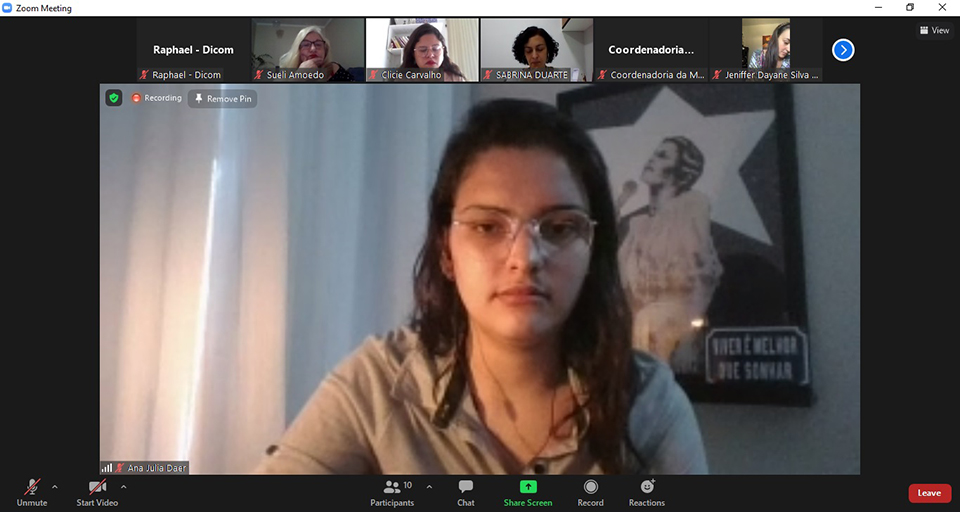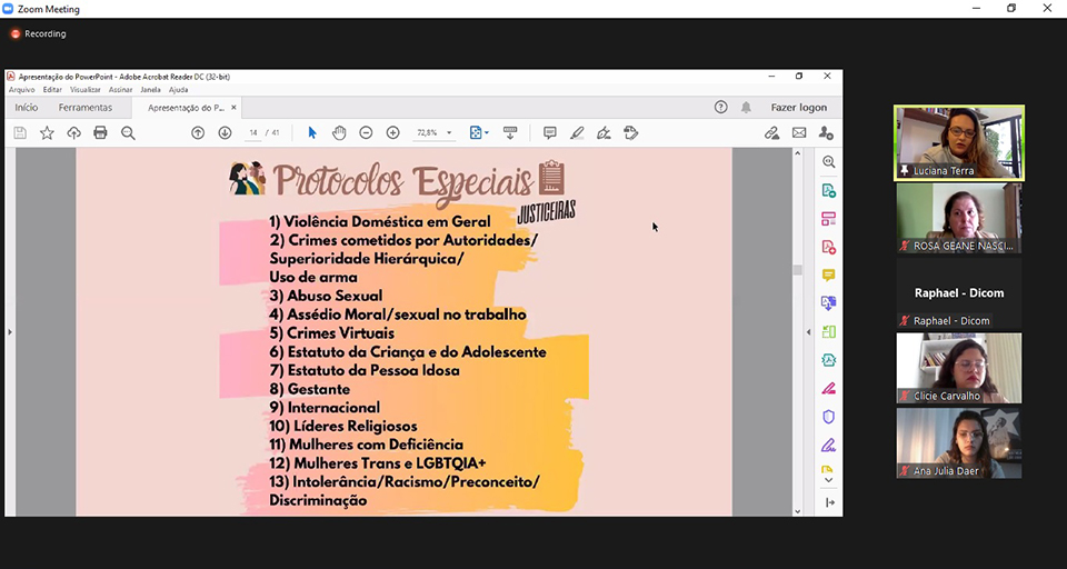 Do Projeto Justiceiras participaram Clicie Carvalho, Ana Júlia Daer, Jeniffer Dayane Pinto, Luciana Terra. Participou também a Juíza do TJSP Maria Domitila Prado Manssur Domingos. Da CEVID, a Psicóloga Sabrina Duarte, a Assistente Social Shirley Leite e a técnica Vânia Barbosa. A liderança no combate à violência em Sergipe, Lícia Melo, também participou da reunião.