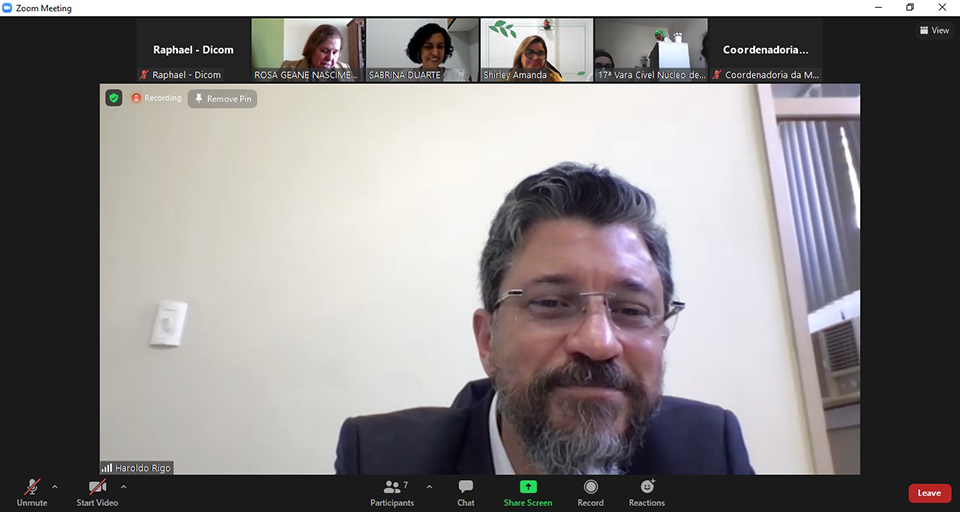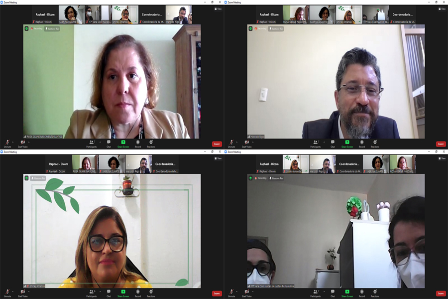 Na ocasião, representando a Cidejure, estiveram o Juiz Coordenador, Haroldo Rigo da Silva e a servidora membro, Michelle Cunha. Representando a CEVID, participaram a Juíza Coordenadora, Rosa Geane Nascimento e as servidoras Sabrina Duarte e Shirley Amanda Leite.