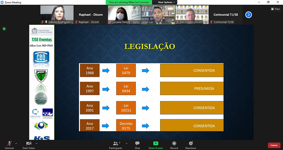 Além de apresentar a legislação brasileira sobre doação de córneas, o médico explicou como é feita a seleção dos doadores, momento em que são avaliadas inúmeras questões, entre elas investigação sobre a causa da morte, histórico clínico, vacinas, transfusões, doenças genéticas, cicatrizes, uso de drogas, entre outras. No entanto, para a efetivação da doação, é necessário o consentimento da família.