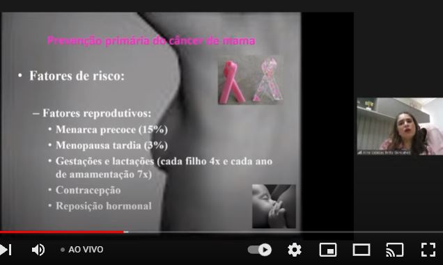 Conforme a médica, o câncer de mama é o segundo tipo de câncer mais frequente. “Uma a cada 8 ou 10 mulheres terão câncer de mama. Por isso, precisamos buscar o diagnóstico precoce. O câncer de mama em jovens tem aumentado. No Brasil, dados do final de 2019 mostraram que 41,1% dos casos foram de mulheres abaixo dos 50 anos de idade. Por isso, a recomendação da Sociedade Brasileira de Mastologia é que o rastreamento seja a partir dos 40 anos de idade”, orientou.