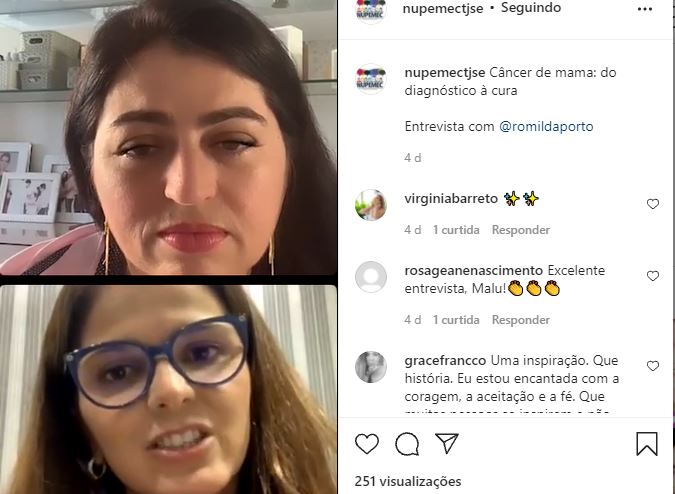 O tema também foi debatido pelo Núcleo Permanente de Métodos Consensuais de Solução de Conflitos, em seu perfil do Instagram (@nupemectjse), no último dia 20. Na ocasião, a empresária e Coordenadora do Grupo Flores de Aço, Romilda Porto, conversou com a Juíza Maria Luiza Foz Mendonça, Coordenadora do Cejusc Aracaju. A empresária contou como venceu o câncer de mama, descoberto em 2017, e falou sobre o trabalho do Grupo Flores de Aço, que atualmente conta com mais de 100 mulheres.