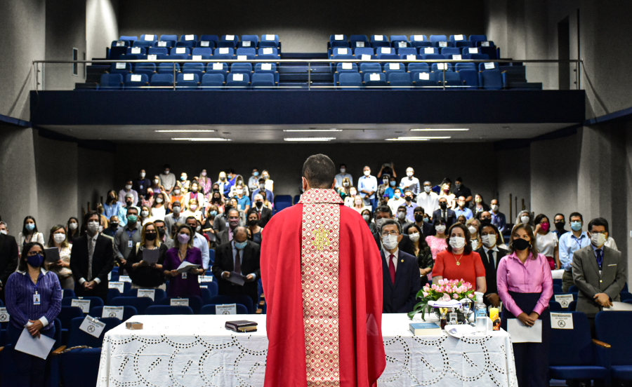 A missa em ação de graças ao Dia do Servidor foi celebrada pelo padre Marcelo Conceição. “Esta homenagem ocorre porque certamente vocês descobriram, na vivência do trabalho, o amor pelo que fazem”, disse o padre durante a homilia. “Assim, estão promovendo a justiça. Que cada vez mais, Deus faça de vocês obreiros do bem comum”, completou o sacerdote.