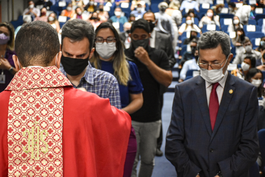 Ainda durante a celebração, as vítimas da Covid-19 foram lembradas. Um dos servidores do TJSE que venceu a pandemia e participou da celebração foi o médico José Osvaldo Barreto. “É com muita alegria e gratidão a Deus que participo hoje dessa missa no Dia do Servidor Público. A emoção é grande porque estive internado por 51 dias, sendo 46 na UTI e 22 entubado. Somente o poder de Deus me trouxe de volta”, agradeceu. O padre Marcelo encerrou a missa destacando uma passagem do livro de Romanos: “aos que fazem o bem, honra, glória e paz”.