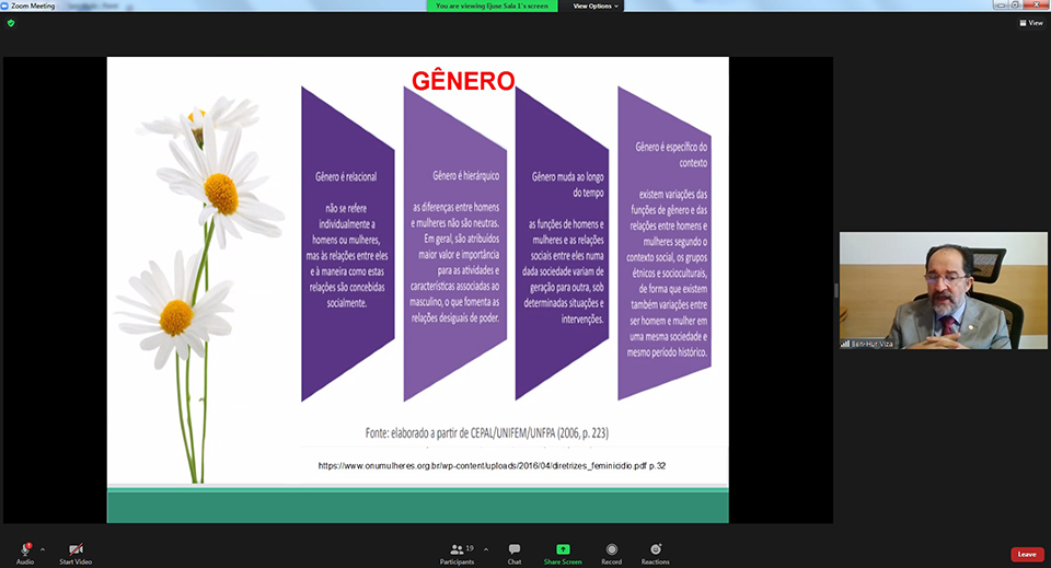 O Juiz do TJDF iniciou a aula falando sobre gênero e violência doméstica contra a mulher. “Para Lei Maria da Penha, gênero tem um conceito social, mais voltado à antropologia e sociologia. Ele é relacional, hierárquico, muda ao longo do tempo e é específico do contexto. Não se refere individualmente a homens ou mulheres, mas às relações entre eles e à maneira como essas relações são concebidas socialmente”, explicou o magistrado.