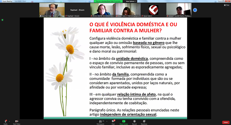 O curso, realizado pela plataforma Zoom, terá 17 horas/aula e tem como objetivo possibilitar a compreensão do ciclo da violência doméstica e familiar, dos estereótipos e preconceitos que levam à violência de gênero; e do trauma e de suas consequências.