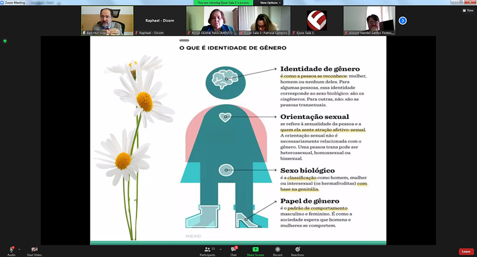 Ainda durante a aula, o Juiz falou sobre a diferença entre identidade de gênero, que é como a pessoa se reconhece; orientação sexual, que se refere à sexualidade e a quem a pessoa se sente atraída afetivo-sexualmente; sexo biológico, classificação baseada na genitália; e papel de gênero, que é o padrão de comportamento masculino e feminino. “A identidade de gênero está ligada à cabeça e a orientação sexual ao coração, para onde oriento a minha vontade sexual”, reforçou.