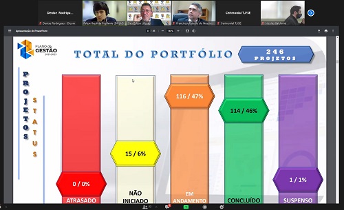 "Estamos chegando ao final deste 2ª ciclo do nosso Plano de Gestão. Os projetos já devem estar se encaminhando para a sua conclusão, uma vez que para o 2º ciclo teremos uma reunião de fechamento em 21 de janeiro de 2022", informou Felipe Baptista Prudente, Diretor de Planejamento e Desenvolvimento. Informou ainda que, deste 2º ciclo, com relação aos eixos do Plano de Gestão, 52 projetos estão elencados no eixo Excelência da Área-fim; 29 projetos estão no eixo Cidadania, Diálogo, Cultura e Memória Judiciária; 08, no eixo Transformação Digital; 32, no eixo Pessoas e Gestão; e no eixo Excelência da Área-meio, estão elencados 12 projetos.