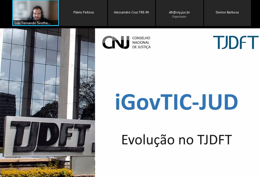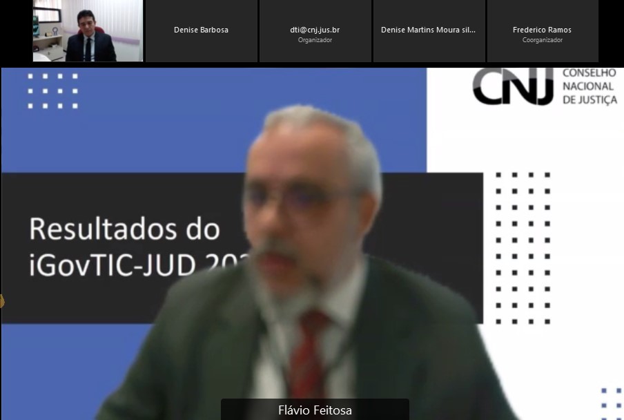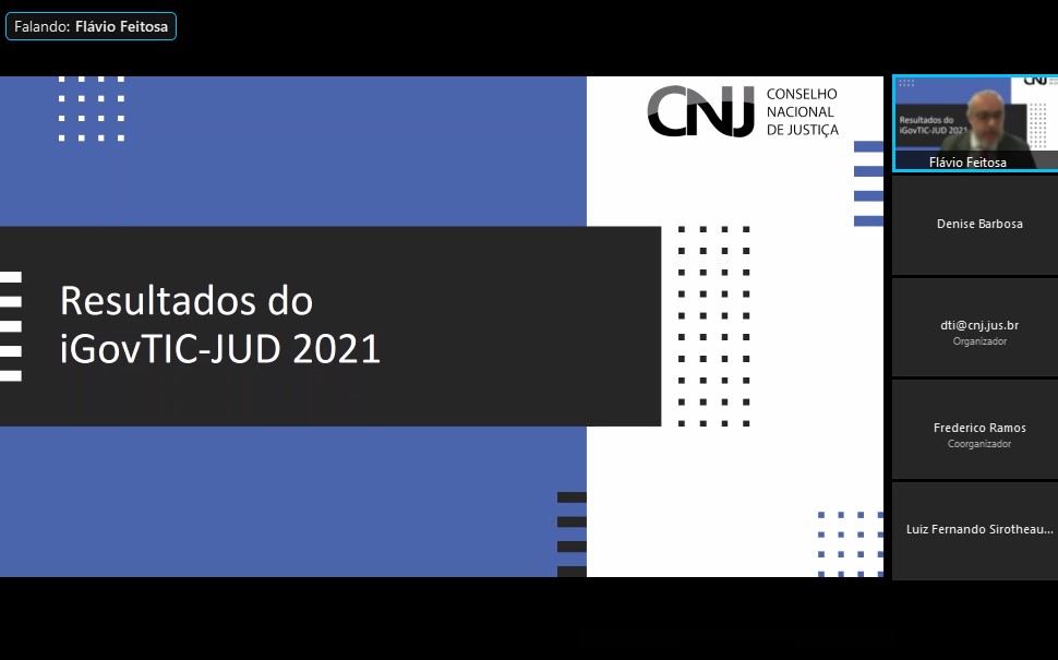 O evento foi aberto por Flávio Feitosa, Coordenador de Apoio à Governança do Departamento de Tecnologia da Informação e Comunicação (DTI) do CNJ. “Estamos aqui nos reunindo, nessa primeira versão do ciclo 2021-2026, para mostrarmos quais são as nossas perspectivas em relação ao agora e ao futuro. É uma coroação do trabalho das áreas de tecnologia dos Tribunais, que demonstraram uma continuidade da maturidade quanto à governança e gestão de TI. O iGovTIC começou em 2016 e o grande objetivo é termos uma visibilidade sobre essa política pública de estratégia digital do Poder Judiciário”, explicou Flávio. A ideia do CNJ é que os Tribunais cheguem a 2026 com, pelo menos, 75% dos órgãos no nível satisfatório.
