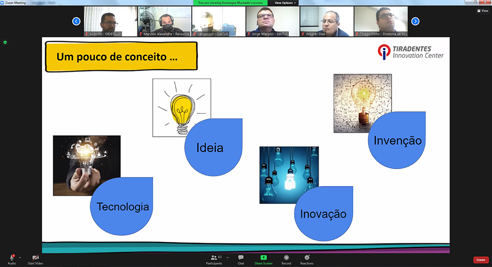 A palestra foi iniciada com alguns conceitos importantes, como ideia, inovação, invenção e tecnologia. “A inovação é quando alguém tem uma ideia que impacta a sociedade”, explicou Domingos, que também é professor da Universidade Tiradentes. Ele diferenciou a inovação incremental, que melhora o desempenho de produtos; da disruptiva, que traz uma proposta de valor diferente a produtos, causando grande mudança no mercado, ampliando o acesso às tecnologias, sendo mais acessível e simples.