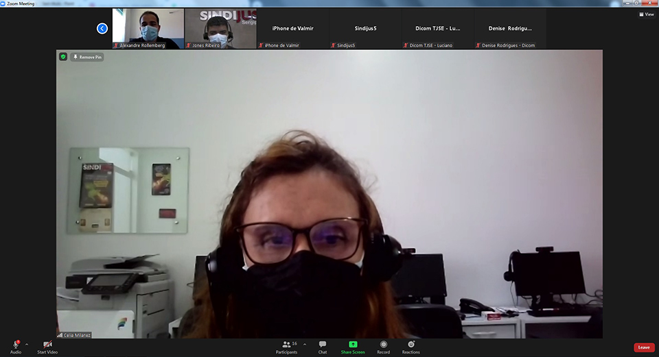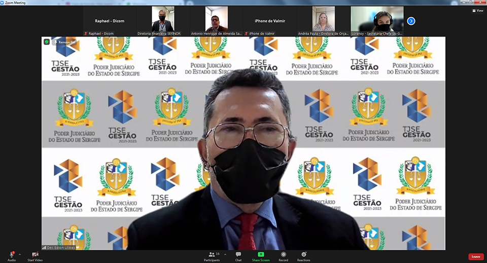 O Presidente do Poder Judiciário de Sergipe, Des. Edson Ulisses de Melo, promoveu um encontro com membros da diretoria executiva do Sindicato dos Trabalhadores do Poder Judiciário do Estado de Sergipe (Sindijus), nesta segunda-feira, dia 07/02. Na reunião, ocorrida por videoconferência, o Presidente ouviu a pauta de reinvindicações da categoria, em especial com relação à recomposição salarial.