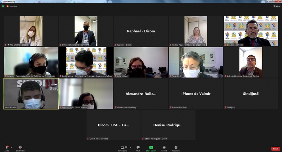 Do TJSE, participaram da reunião os Juízes Auxiliares da Presidência, Maria da Conceição da Silva Santos e Antônio Henrique Santos; o Secretário de Finanças, Pedro Vieira; o Secretário de Planejamento e Administração, Valmir de Farias Lima Júnior; a Diretora de Gestão de Pessoas, Ana Cristina; a Diretora de Orçamento, Andréa Paula; a Secretária-Chefe de Gabinete, Lorenoy Mascarenhas. Do Sindijus, ainda participaram Célia Milanez e Sara do Ó.