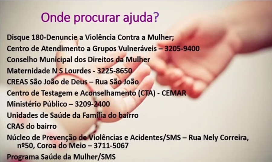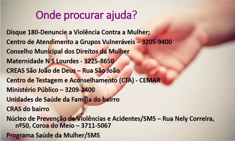 Segundo Lidiane, os diversos estabelecimentos de saúde são lugares estratégicos para identificação de casos de violência contra a mulher. “A abordagem, seja de um assistente social, seja de um agente comunitário de saúde, de um médico, enfermeiro ou dentista, é fundamental. Muitas vezes, a mulher pode não relatar a violência sofrida, mas existem sinais que esses profissionais precisam estar atentos”, alertou Lidiane. Entre os sinais de violência que requerem atenção desses profissionais estão a entrada tardia no pré-natal e complicações na gestação, depressão, ansiedade e tentativa de suicídio e lesões físicas que não se explicam.