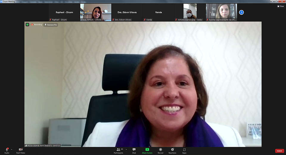 A Coordenadoria da Mulher do Tribunal de Justiça de Sergipe (TJSE) reuniu por videoconferência, na manhã da última sexta-feira, 11/03, representantes dos Poderes Judiciário, Executivo e Legislativo para discutir a implementação de serviços previstos na Lei Maria da Penha. Além disso, a equipe da Coordenadoria visitou o Juizado de Violência Doméstica e Familiar contra a Mulher, no Fórum Gumersindo Bessa. Os dois eventos encerraram a programação da 20ª Semana Nacional da Justiça pela Paz em Casa.