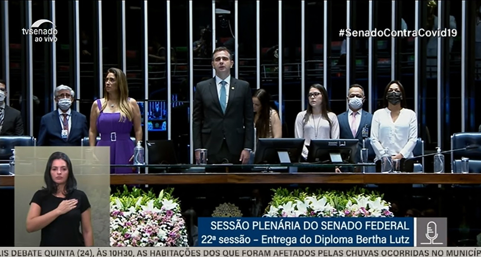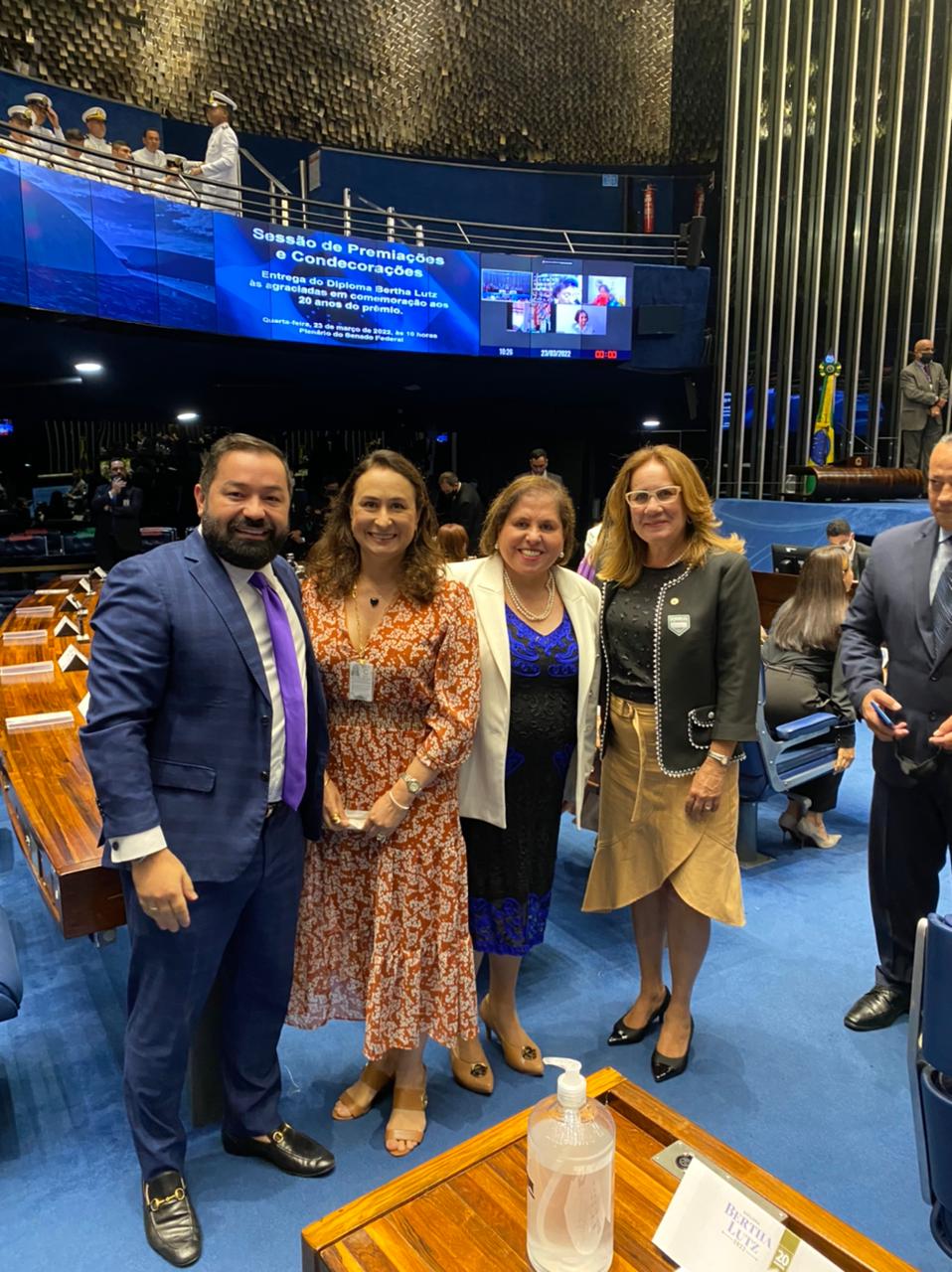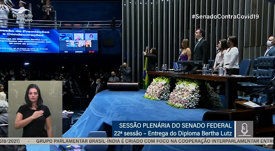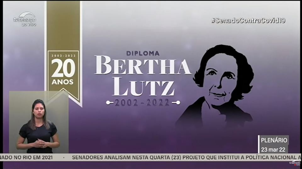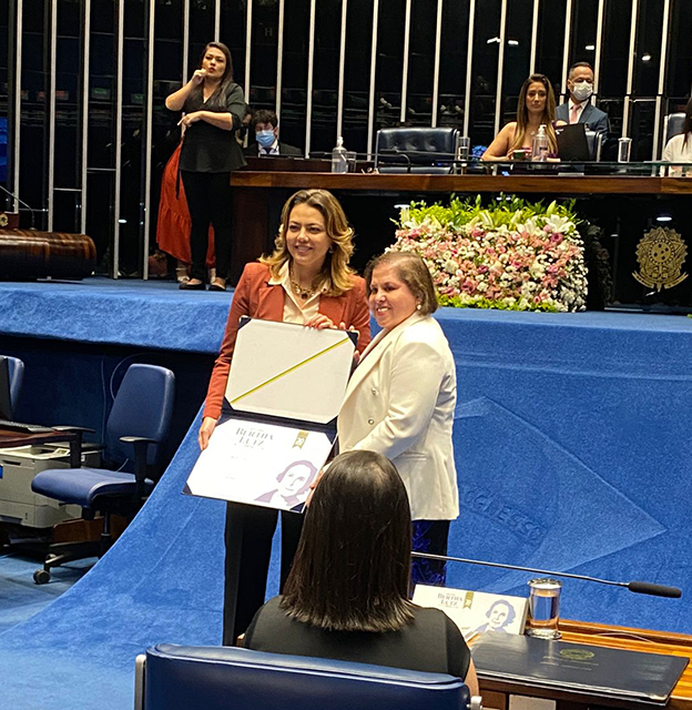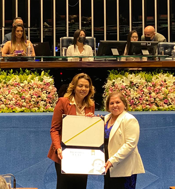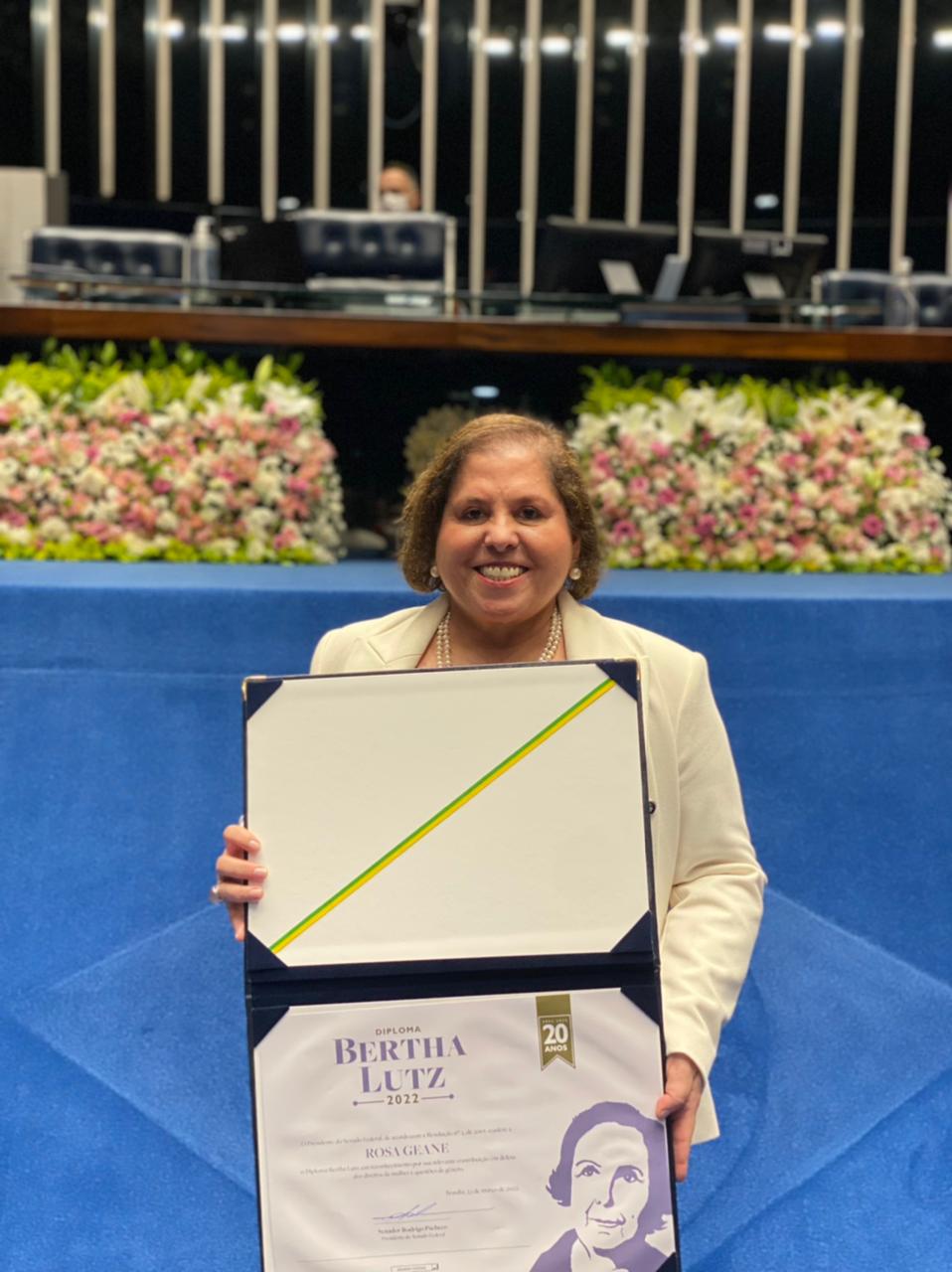 Foi realizada na manhã desta quarta-feira, 23/03, no Plenário do Senado, em Brasília, a solenidade de entrega do Diploma Bertha Lutz, dedicado a pessoas que contribuem para a defesa dos direitos da mulher e para as questões do gênero no Brasil. A Juíza Rosa Geane Nascimento, Coordenadora da Mulher do Tribunal de Justiça de Sergipe (TJSE), foi uma das 21 mulheres agraciadas com a homenagem. A sessão foi transmitida ao vivo pela TV Senado e pelo canal do YouTube.